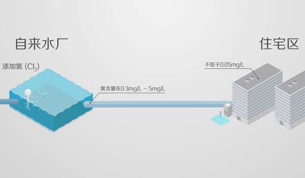 為了防止水在出廠到入戶這段管網中滋生細菌,水廠都要往水里加液態氯,氯和水反應生成的次氯酸,具有強氧化性,是便宜又好用的殺毒滅菌方案。 國標要求氯在出廠時含量須在 0.3mg/L 到 5mg/L 之間,經過中間輸送過程的揮發,入戶時不能低于標準(0.05mg/L)。一般超過 0.3mg/L 人會感覺就有淡淡的氯味,超過 1mg/L 就比較嗆造成不適。理論上氯是對人體有害的,但是任何拋開劑量,危害就微乎其微了。近年來又有研究人員發現:氯與自來水反應的三氯甲烷可能致癌,但這并沒有明確的實驗結果出來。只能說入口的氯當然越少越好。